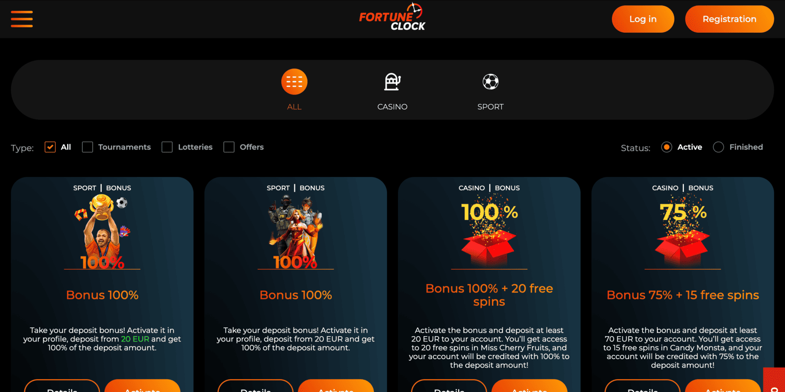 | Fortune Clock Casino | 225% + 60 FS | Playing on a mobile phone | 5 |