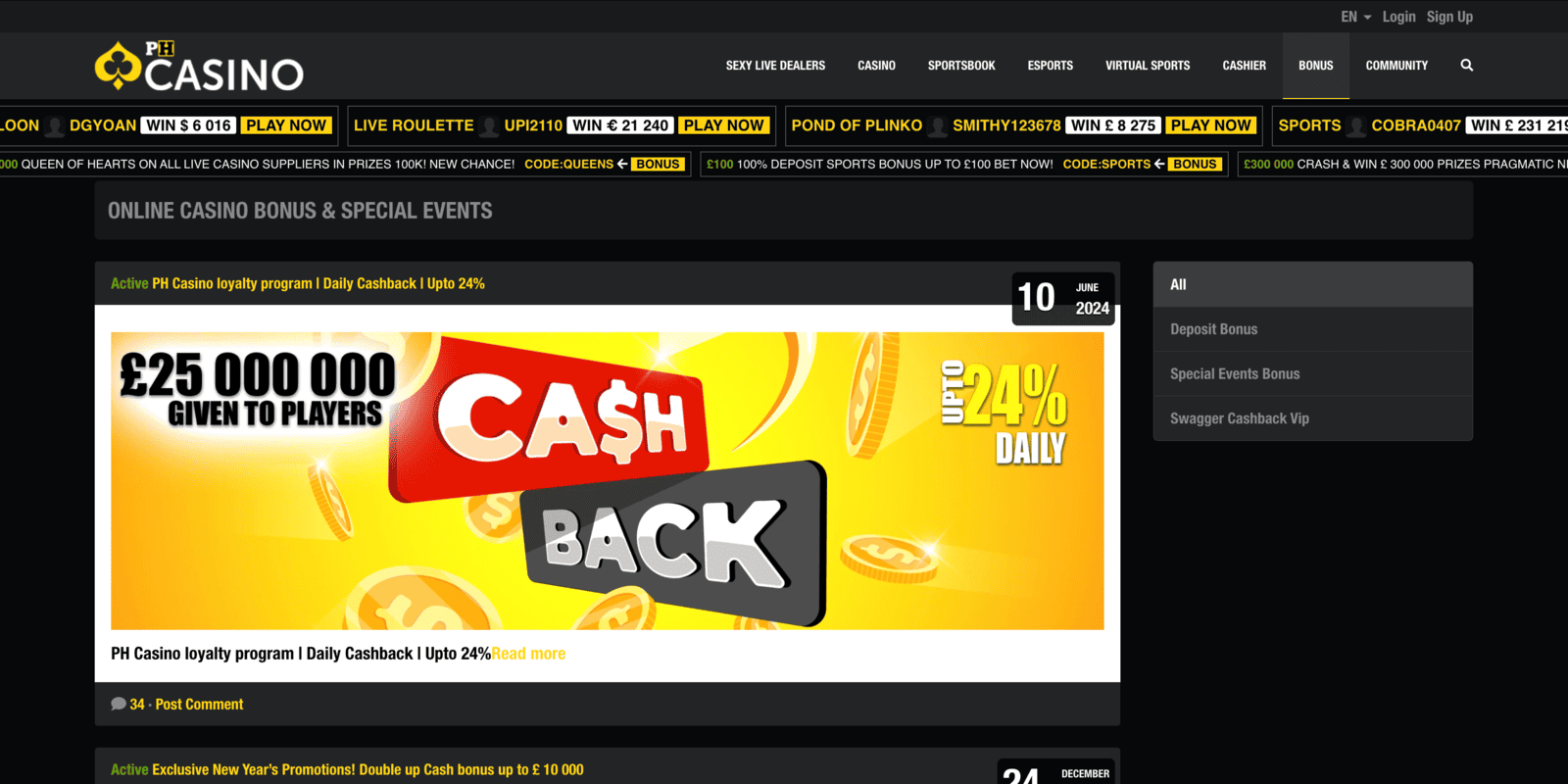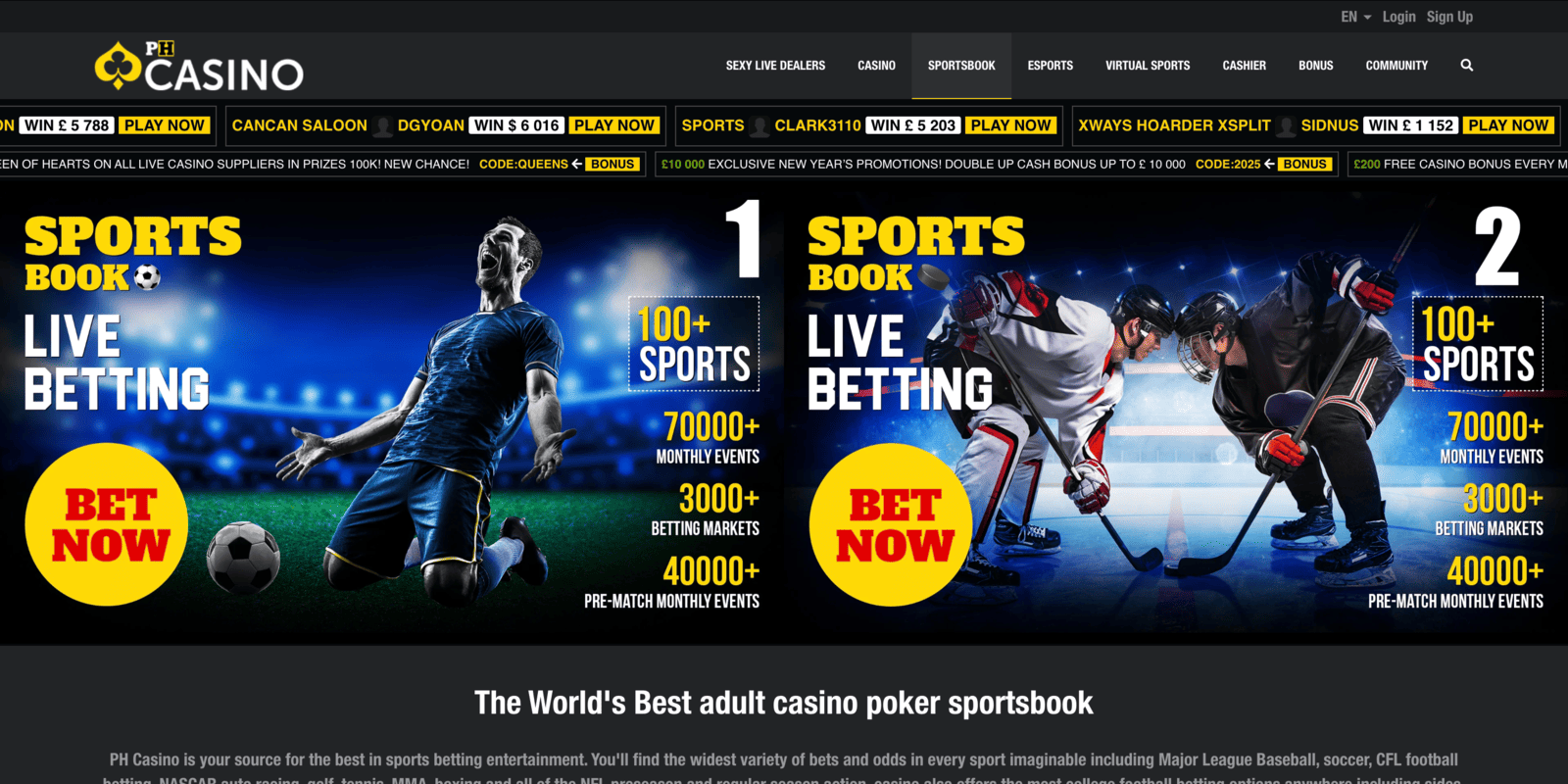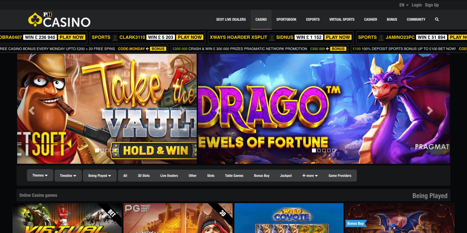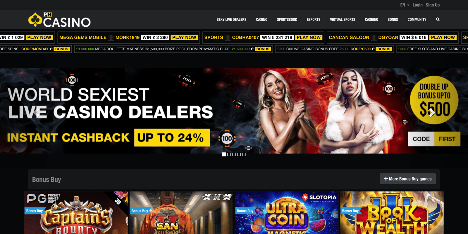 | PH Casino | Up to £500 Deposit Bonus | Playing with live dealers | 4.4 |