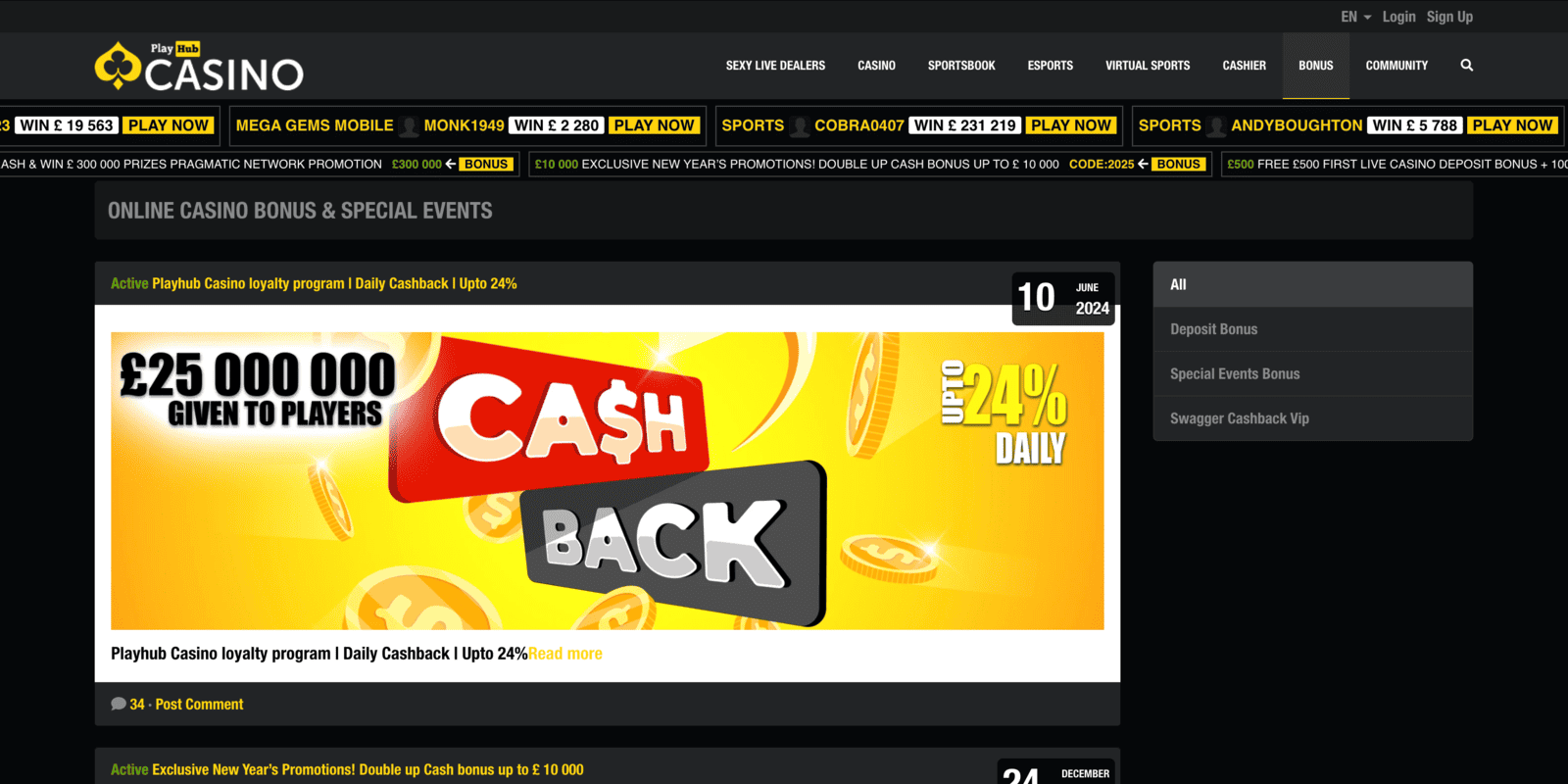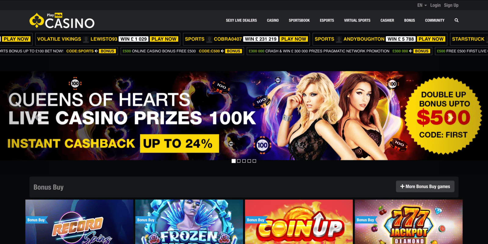 | PlayHub Casino | x2 Deposit Bonus Up to $500 | Playing live casino games | 4.5 |