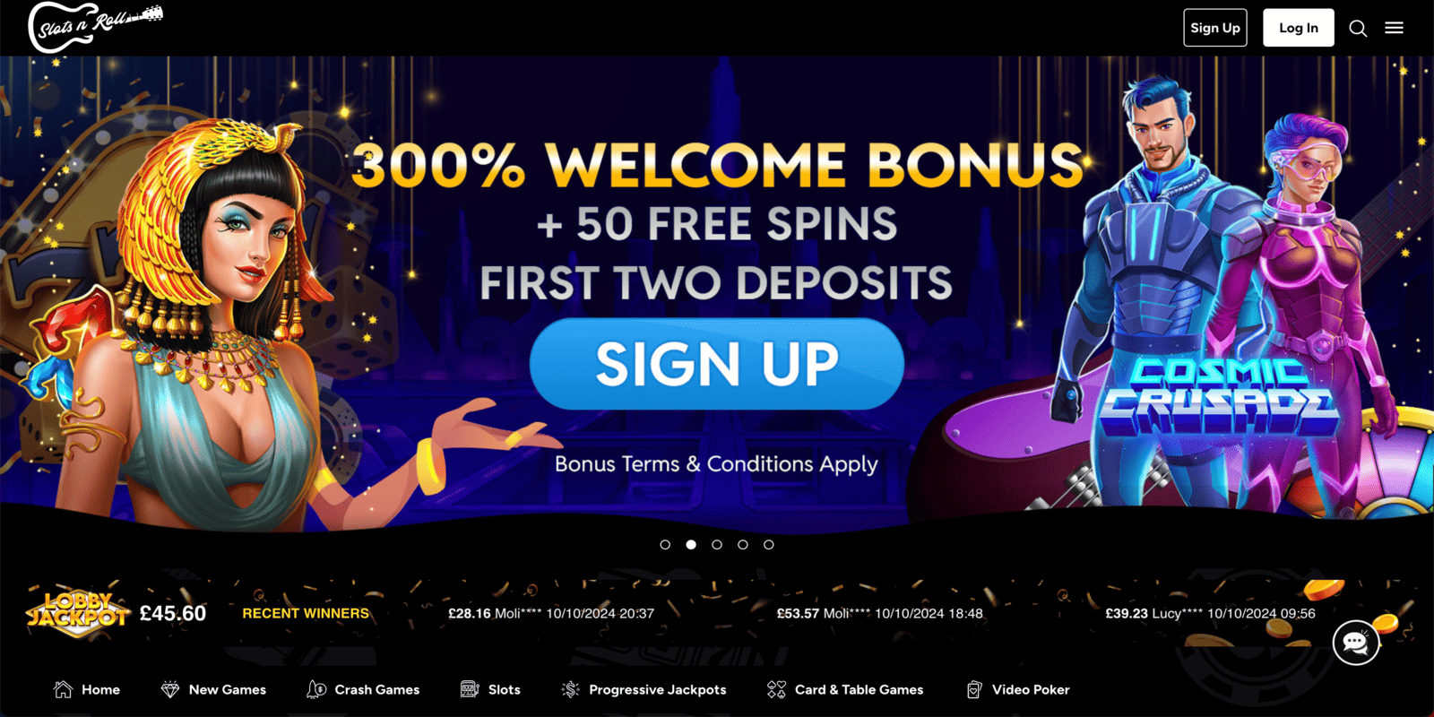 Slots ‘n’ Roll Casinos is a great option for UK players as there are many no deposit casino bonus codes for existing and new players at this site. The promo section is front and centre on the casino Slots ‘n’ Roll homepage, so you should have no difficulty accessing the freebies and seeing which ones require promo codes.