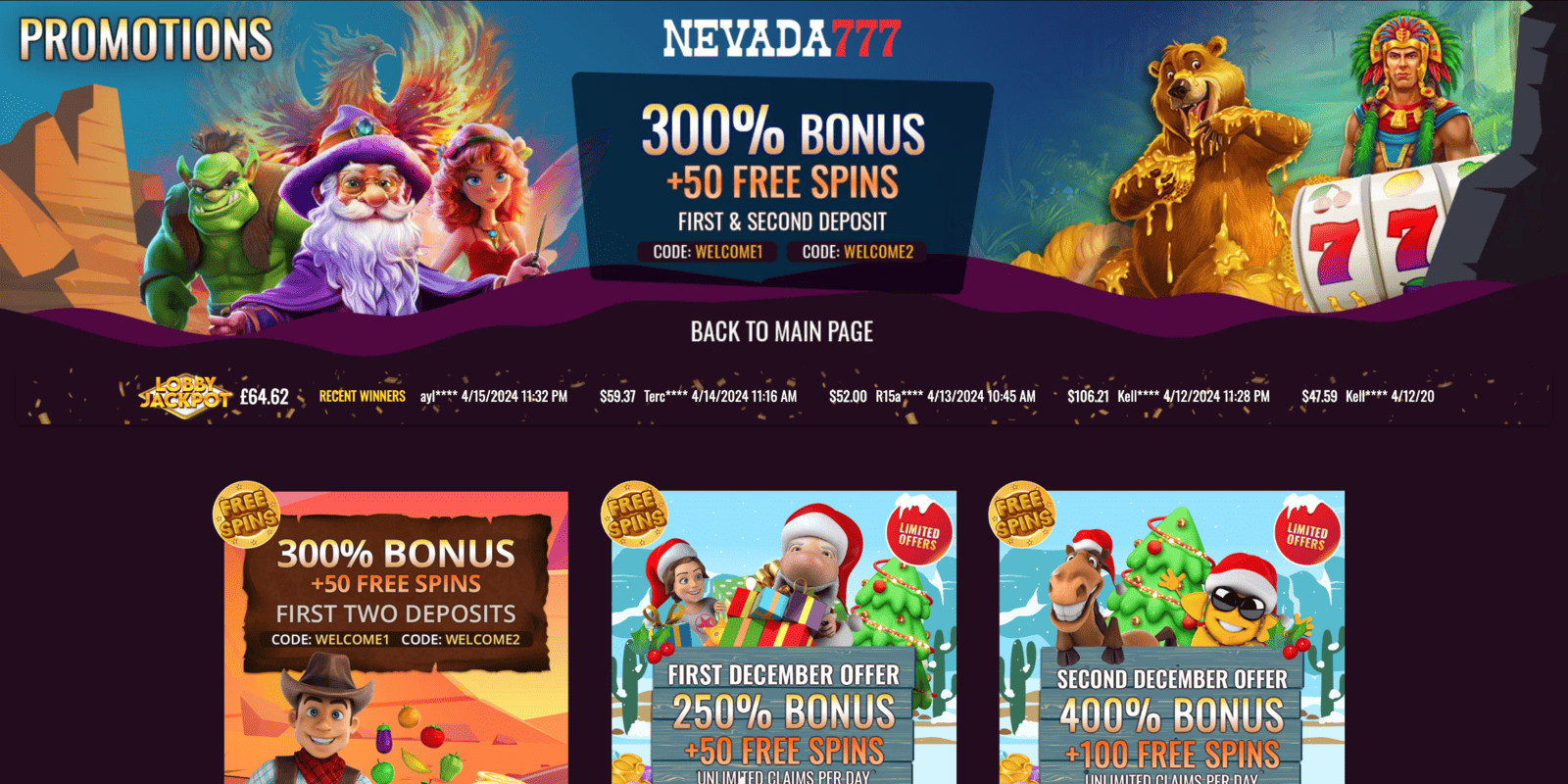 Among the best no deposit casino codes this casino has ever offered is the NEVADA50 code, which could get any player 50 FS. The WR is set at 45x, which isn’t high considering this is a deposit-free perk, whereas the winnings are capped at 50 GBP.