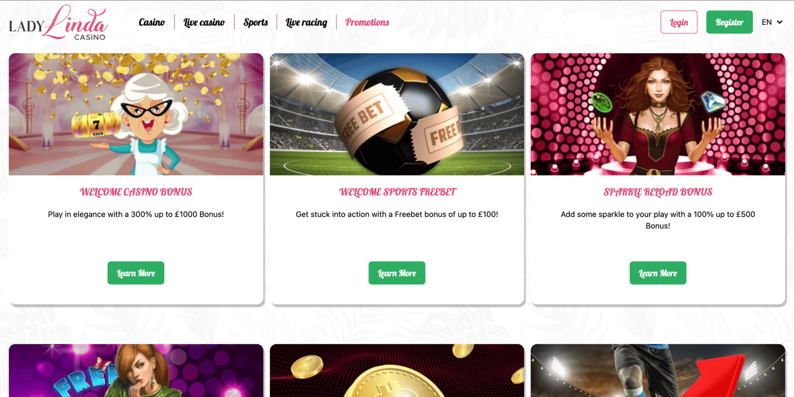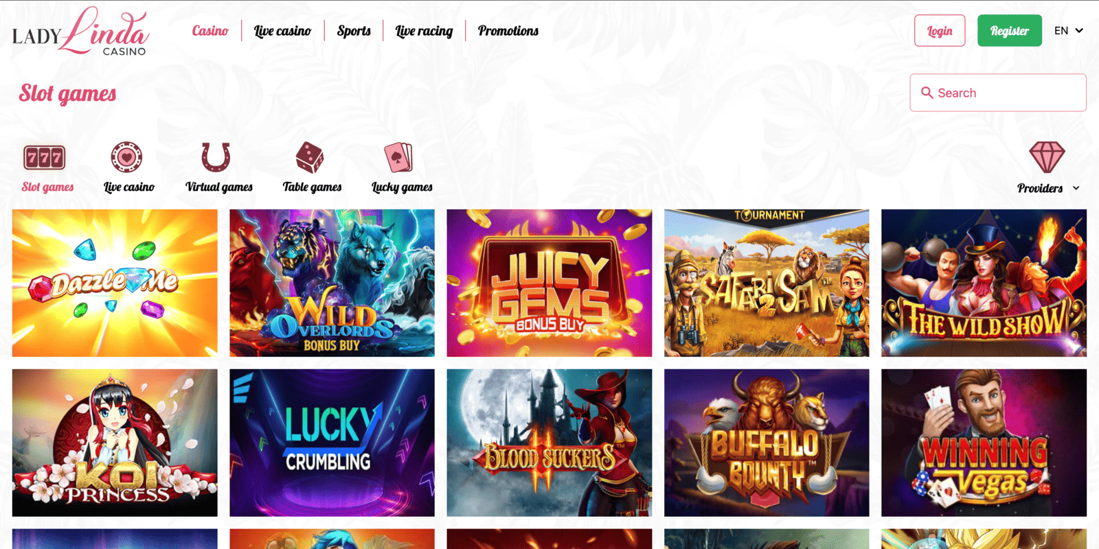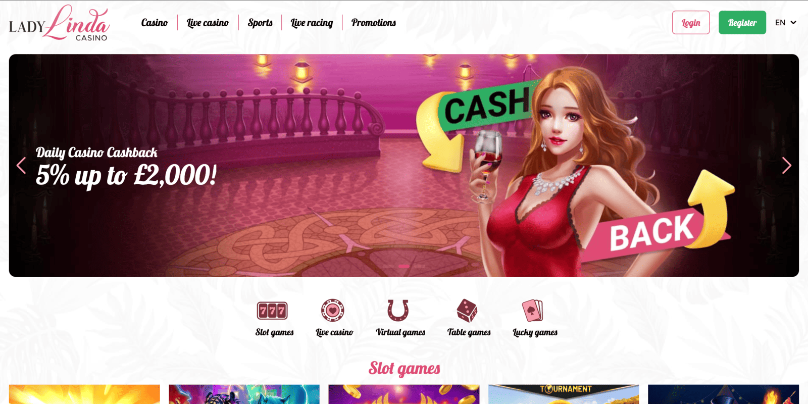 Lady Linda Casino is an online gaming platform with a white, elegant theme that enables you to easily navigate the pages. The casino Lady Linda offers you one of the best 300% deposit bonus promotions that you can use on your favourite casino titles, including slots and table games.