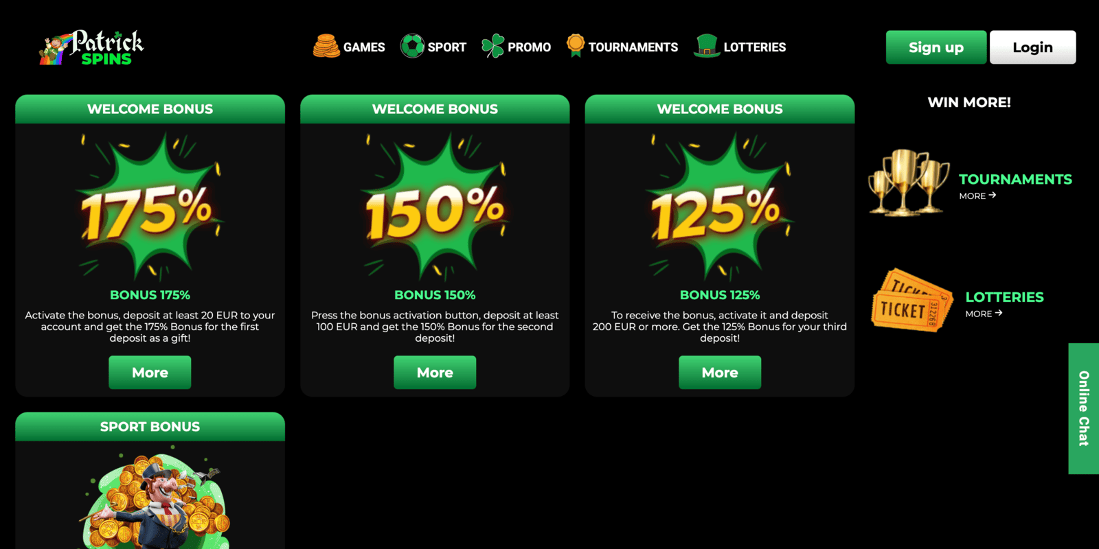 Shamrocks are always the display for luck. So if you want to try your fortune and play Megaways not on GamStop in the United Kingdom, Patrick Spins Casino can help you with this! The simple design of the site allows players to easily navigate through the page and all tabs and find what they need.