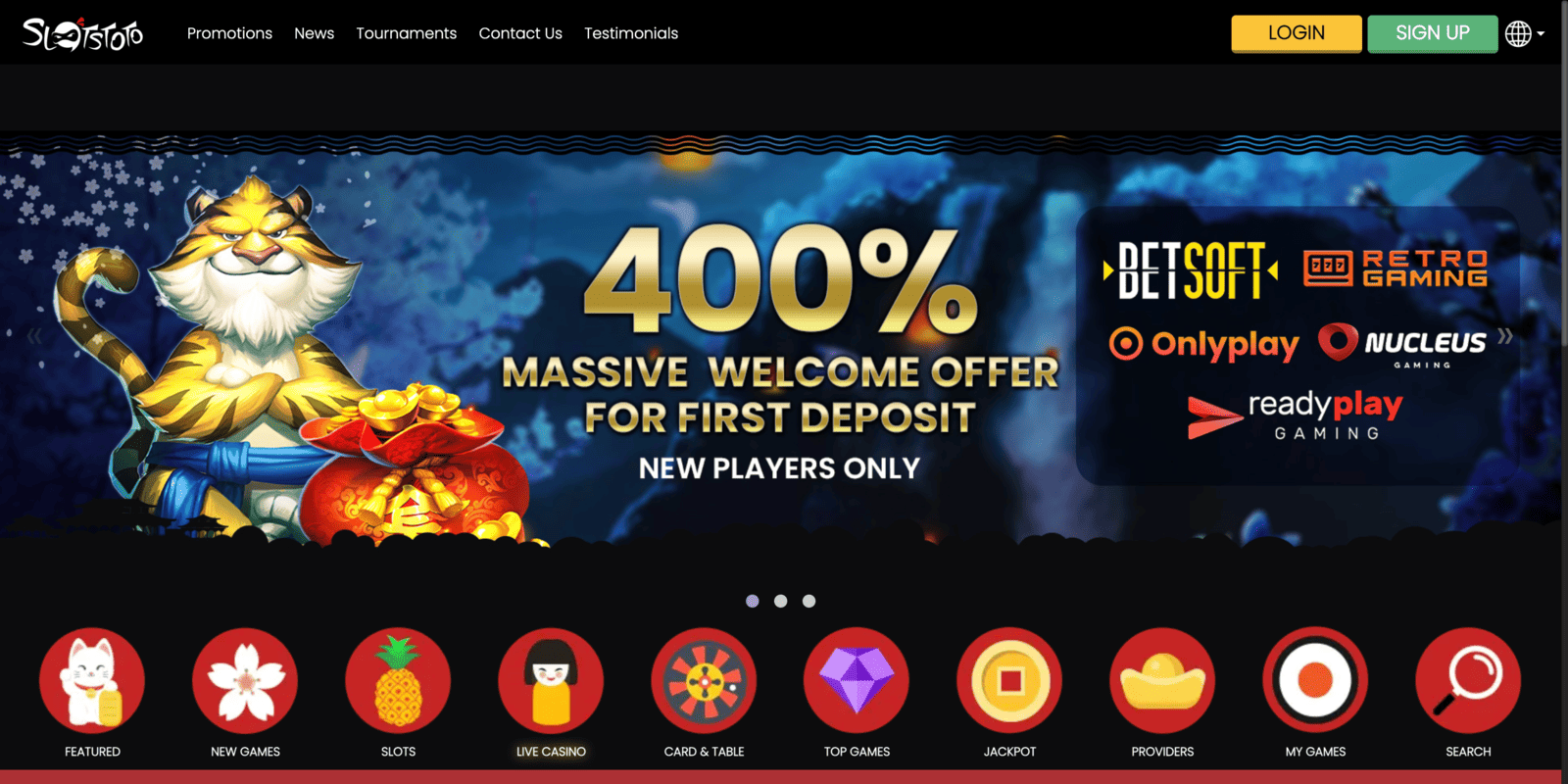 Slotstoto Casino is a great slot site not on GamStop with Megaways games in the lobby. The first thing that catches the eye is the simple yet attractive design of the page with the bundle of slots right on display.