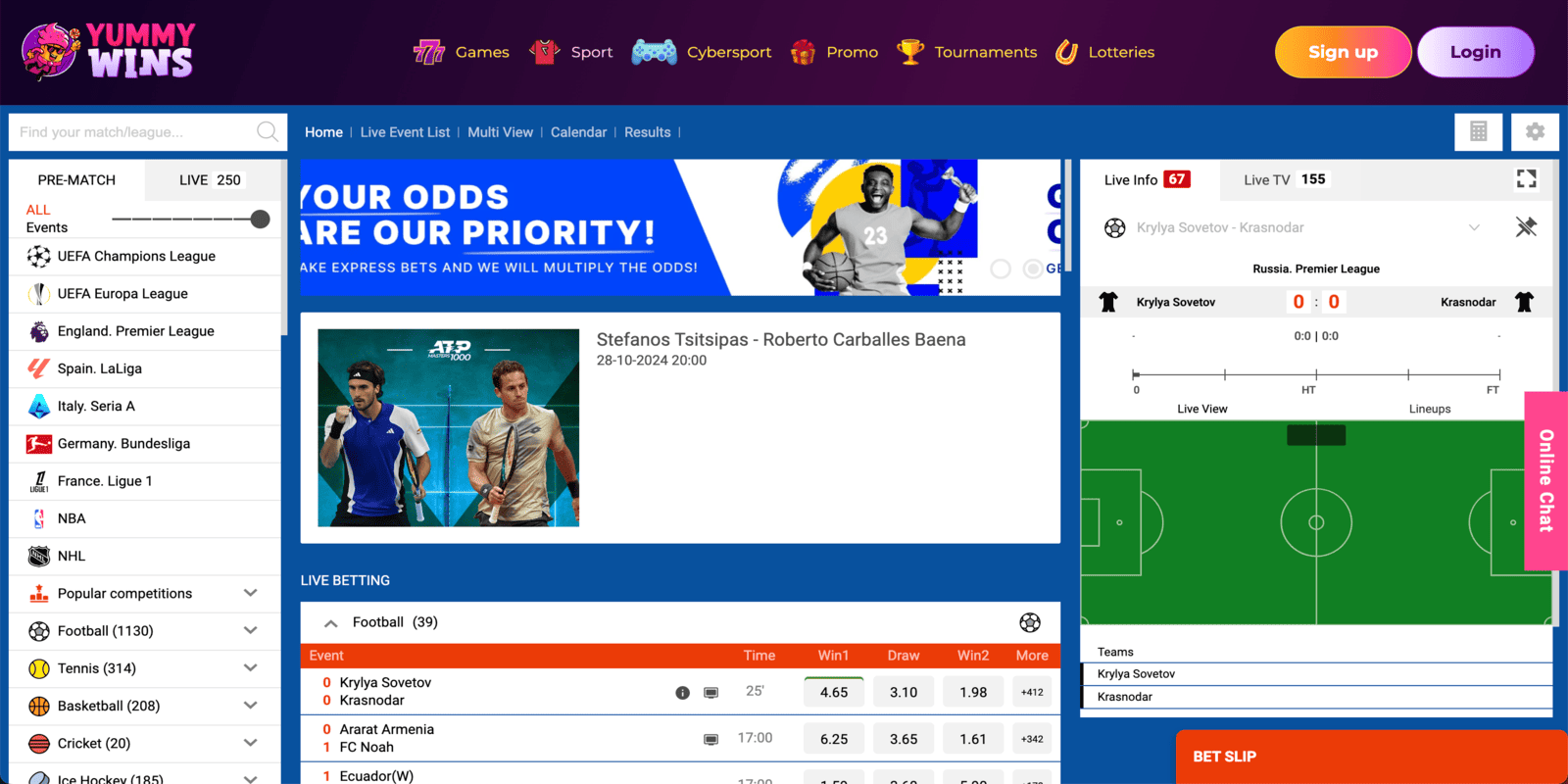 The best news is that the promotions come with 1x wagering requirements, which is hard to locate on the UK market. As a partner of over 100 industry-leading software providers, Yummy Wins casino includes many games and cyber sports where you can bet on the finest teams and players.