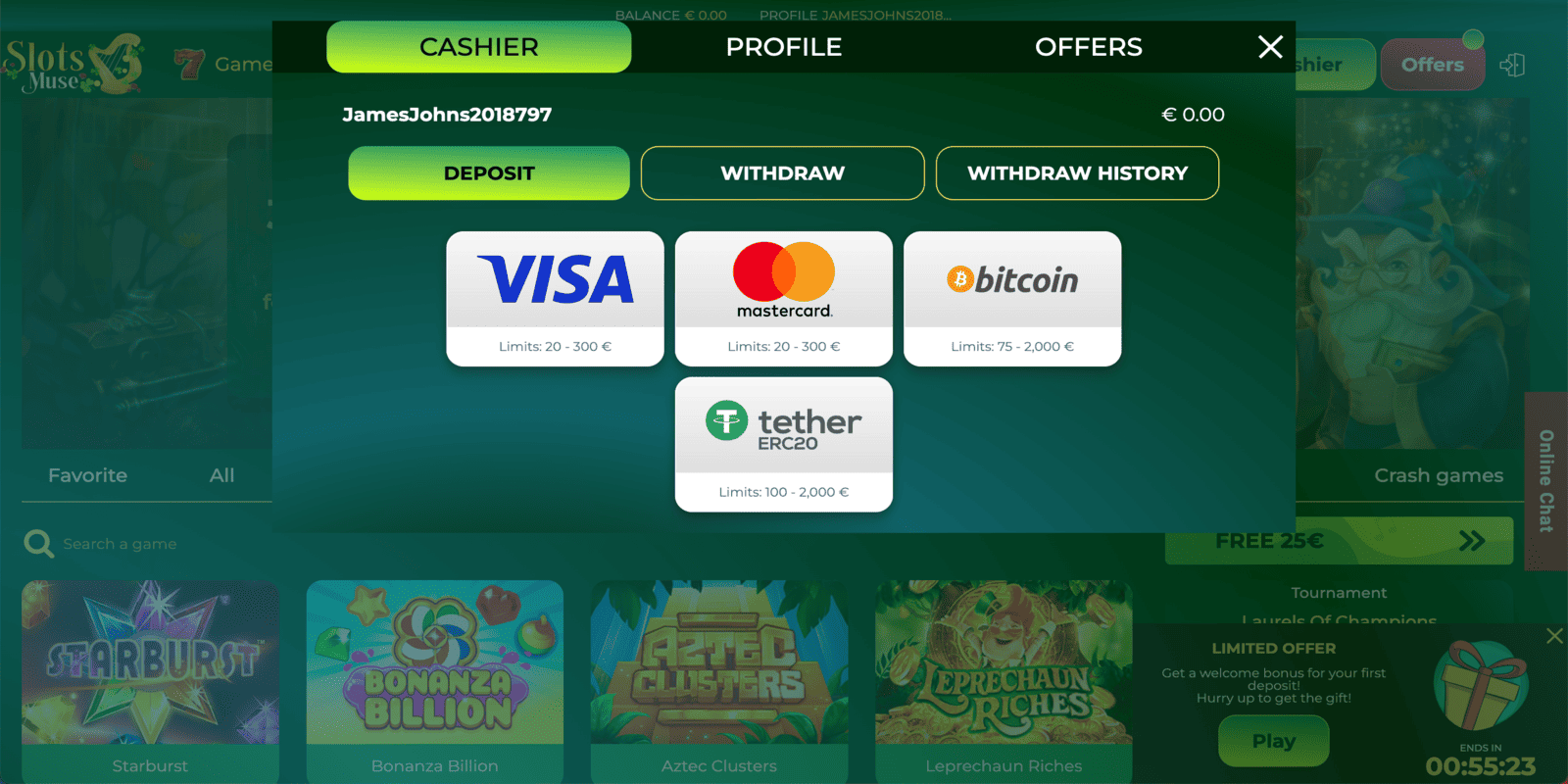 The platform features 24/7 customer support through live chat and multiple secure payment options. You can bank with Visa, Mastercard, Neteller, Skrill, Qiwi, Paysafecard, and a few cryptos.
