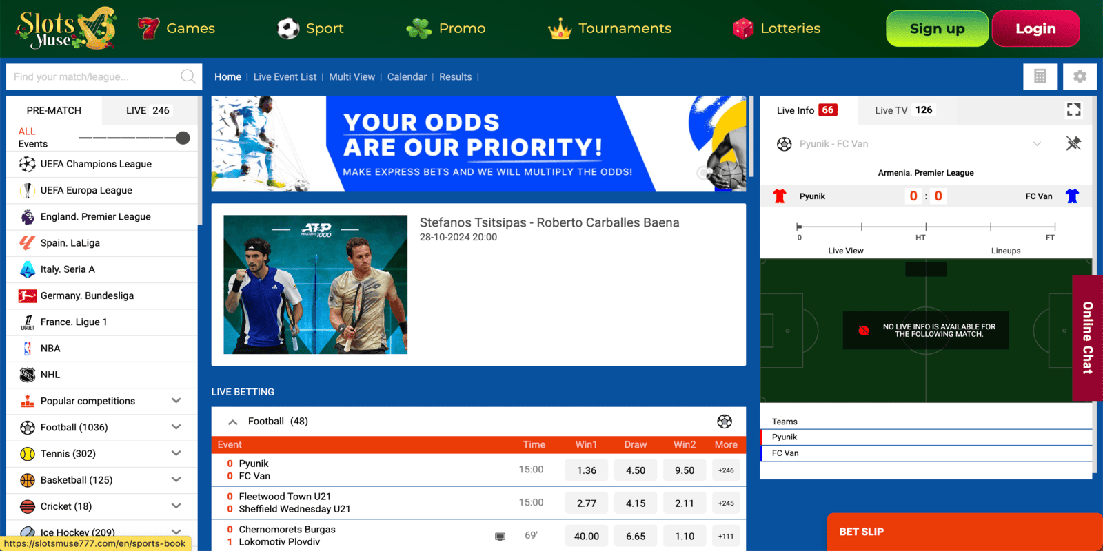 Slots Muse is home to many top-notch bingo titles, like Extra Bingo, Cryptomania Bingo, Bingo Soccer, and Bingo Tornado. All of them are available for you once you enter the Stole Muse Bingo room. Don’t forget to check the lotteries section and explore the active prize pools.