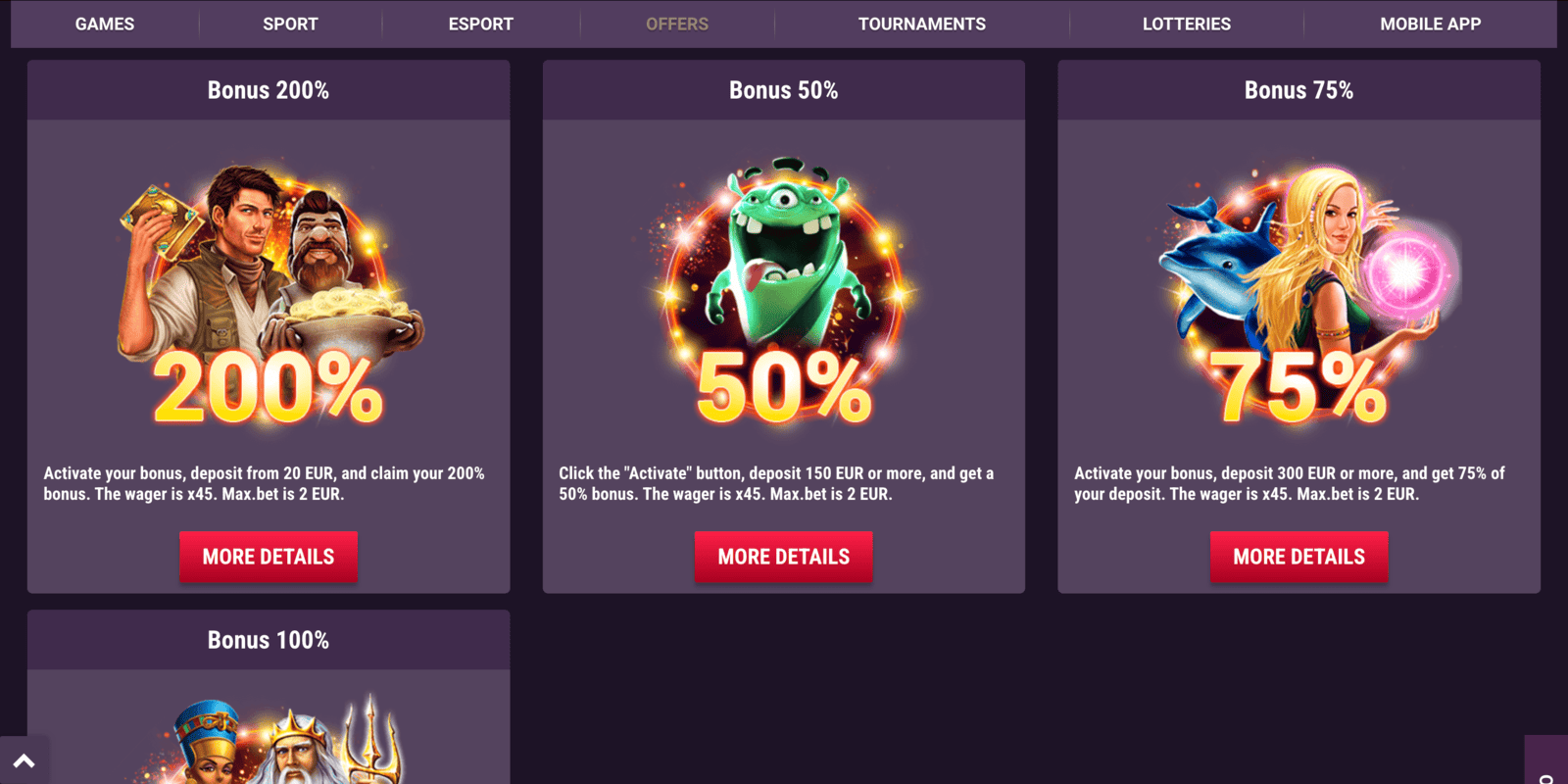 At Prestige Spin casino, you can take part in various tournaments and lotteries for a chance to win a portion of the prize pool. It welcomes players from all parts of the world and only accepts payments through Visa and MasterCard.