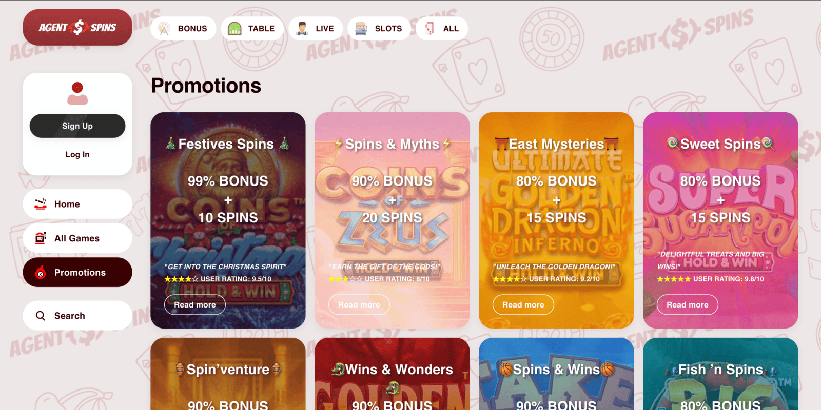 Even though they are a relatively new online casino, Agent Spins are making their mark within the industry. Between the great promotions, great service and with games coming out of your ears, Agent Spins casino are a strong contender. So, if you are looking for an exciting new online casino to play at, be sure to give Agent Spins a try.