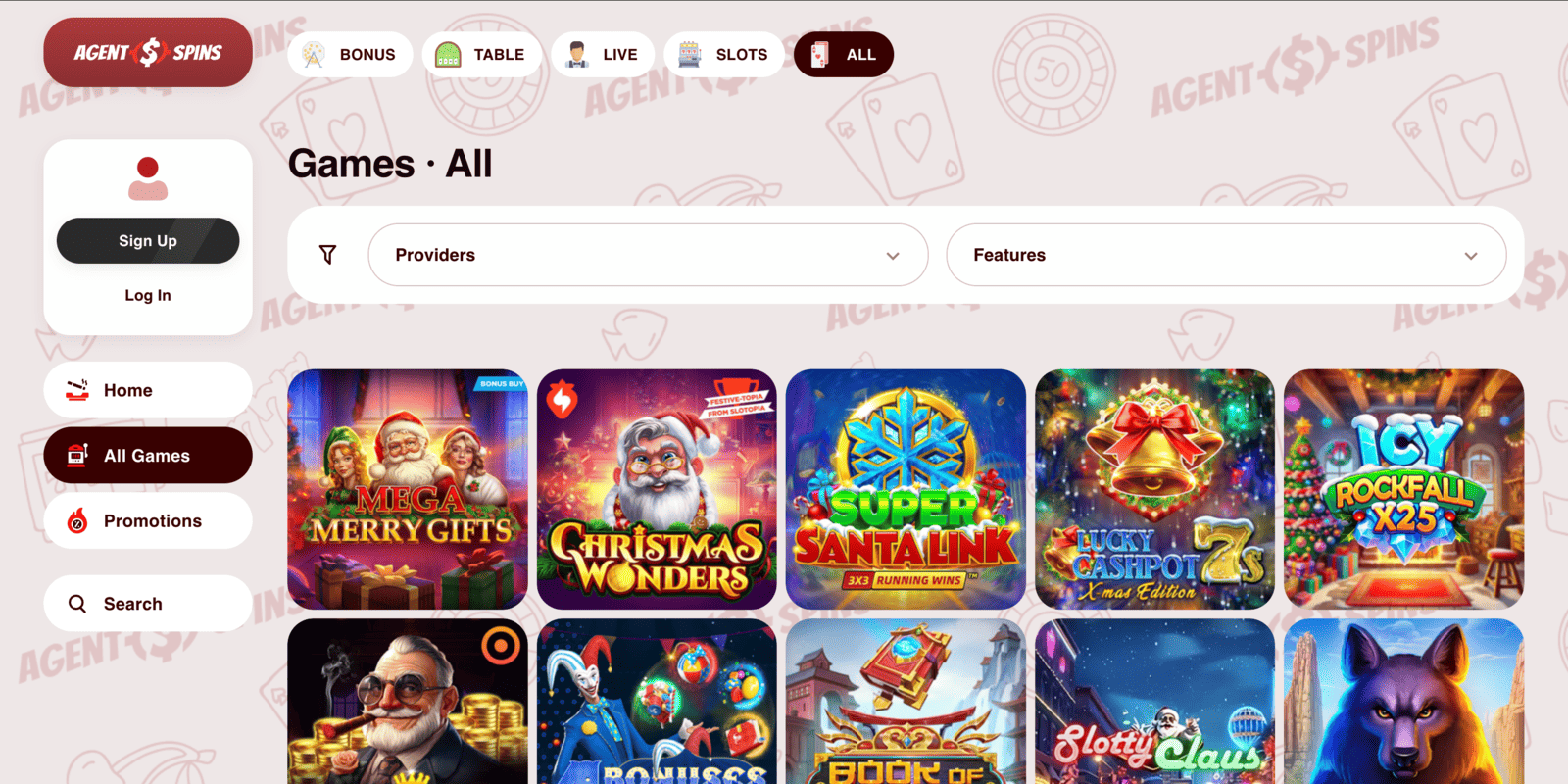 Agent Spins non Gamstop casino for British players is an attractive choice for your next gambling platform. Offering high bonuses and rewards and an abundance of games from all the best software providers, the casino aims to bring you a real casino experience from the comfort of your own home, leaving you with nonstop enjoyment.