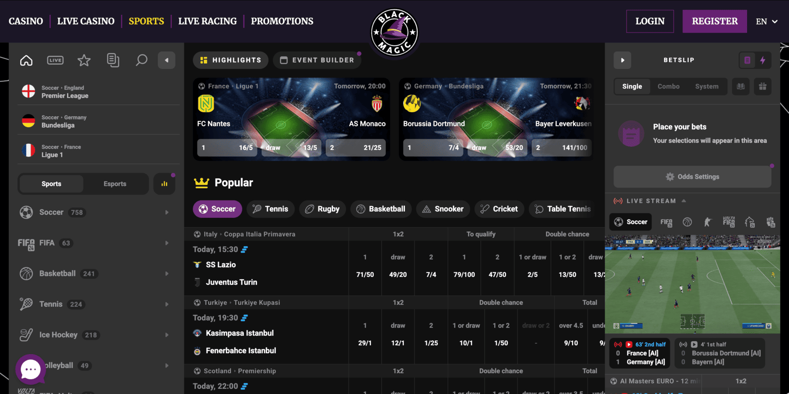 1. Enjoy Live Horse Racing: Black Magic Casino presents the opportunity to the punters to indulge themselves in horse racing betting which is an eminent form of sports betting. Gambling enthusiasts can bet on horse racing not on GamStop.