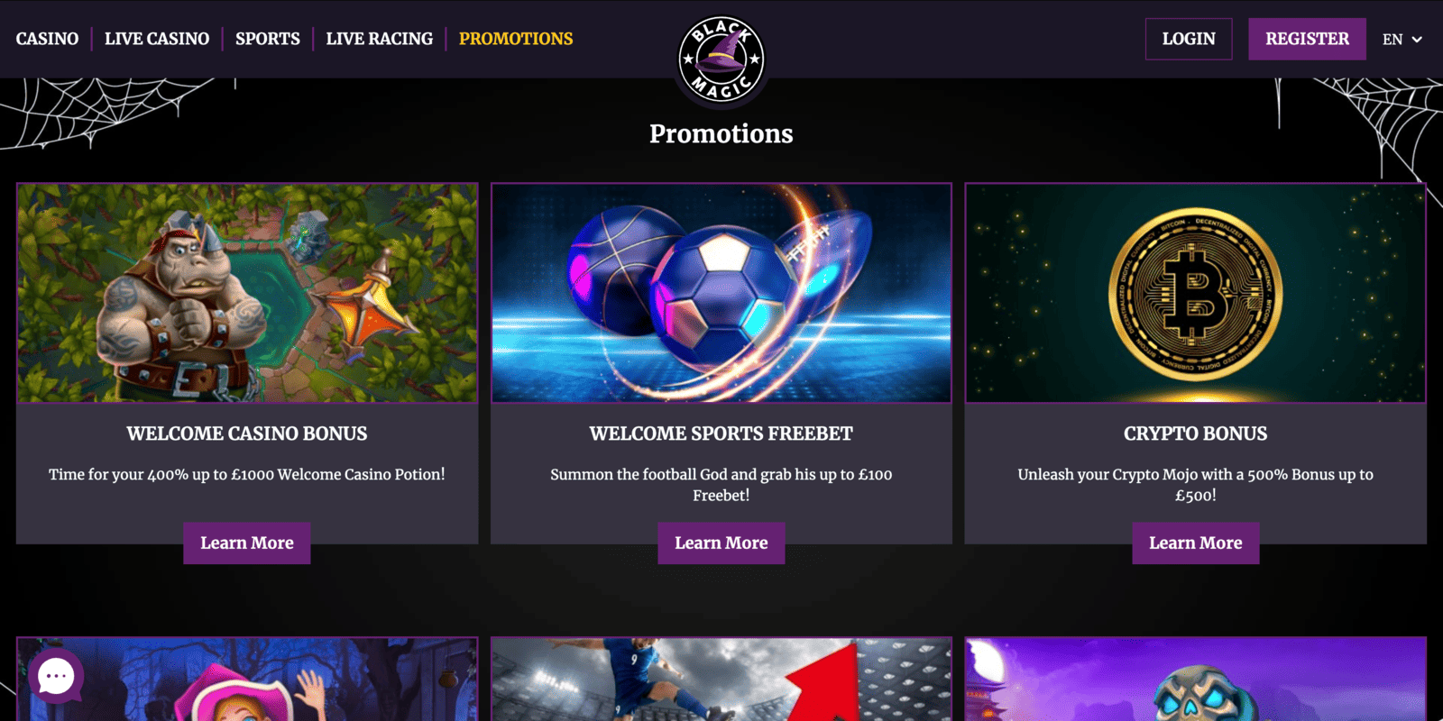 The cumulation of a variety of slot and table games from various high-profile game providers, generous promotional offers, and high-level safety precautions make Casino Black Magic a prominent name in the online gambling industry. As for Black Magic casino review, the site can also be considered a safe place for UK punters to try their luck on sports betting as the GamStop restrictions are not held effective in this case. The multilingual nature of the site encourages harboring a worldwide customer base. Black Magic Casino is thoroughly regulated by the license providers of Curacao eGaming, as a result, making the entire gaming experience secure and free from fraudulent activities, allowing people to indulge in gambling without worrying about consequences.