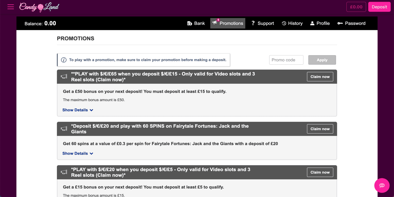 Check out the Candy Land Promotions page for more information on ongoing bonuses, cashback deals, and tournaments. But, as always, make sure you familiarise yourself with all bonus terms & conditions before registering and making a deposit. Doing so will save you both time and money!