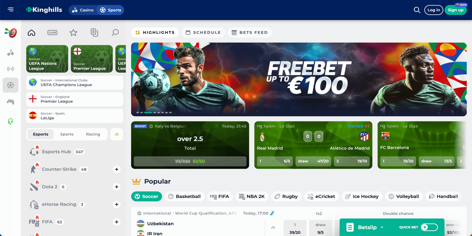 If you are looking for sports betting not on GamStop, Kinghills Casino is a great choice. You can place bets on popular sports like soccer, volleyball, cricket, tennis, and more. In addition, there are esports available on the platform, including Counter-Strike, FIFA, and Dota 2. The sportsbook provides various live betting options, competitive odds, and an overall enjoyable and user-friendly experience.