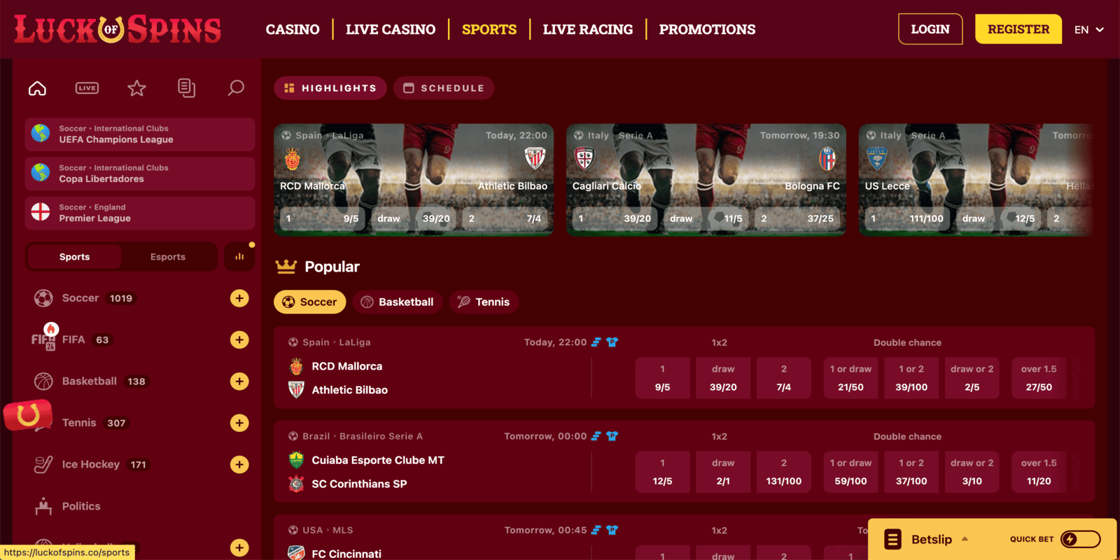 The wild west theme of the website triggers thoughts of saloons, cowboy action, fun, and even drama. That is the sense we get from Luck of Spins Casino. European players can deposit using both euros and pound currencies. International clients can use dollars. Other Luck of Spins Casino reviews also noted its crypto casino status. This is where gambling incognito is possible as well as grabbing bonuses specific to this digital currency. Punters can place wagers on various sporting events if casino games are not their thing. Overall a balanced casino and bookie.