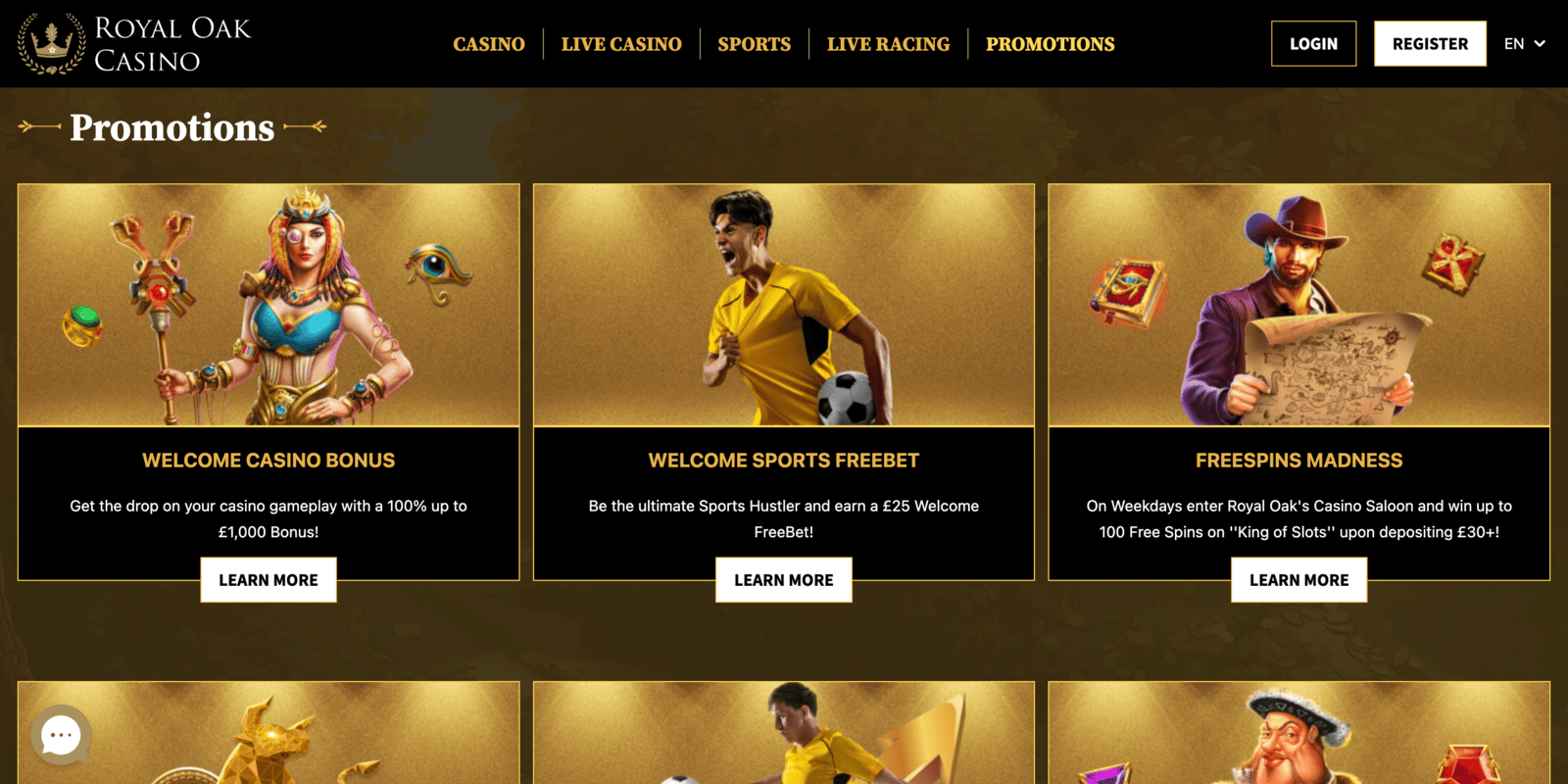 Visit the Royal Oak ‘Promotions’ page or take a look at the list below to know the ropes about all the fantastic bonuses that Royal Oak casino has to offer. There are 5 bonuses on the page currently and are available for all British punters. This list sums up the major points you need to remember while availing of them.