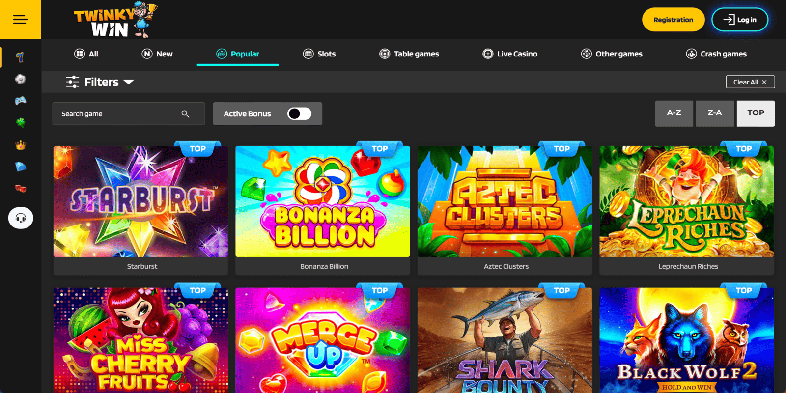 A wide selection of top casino games powered by the best developers always draws attention to the Twinky Win gaming site. We decided to test the casino’s game library and play all game genres available. Below, you can get an insight into the info we came up with.