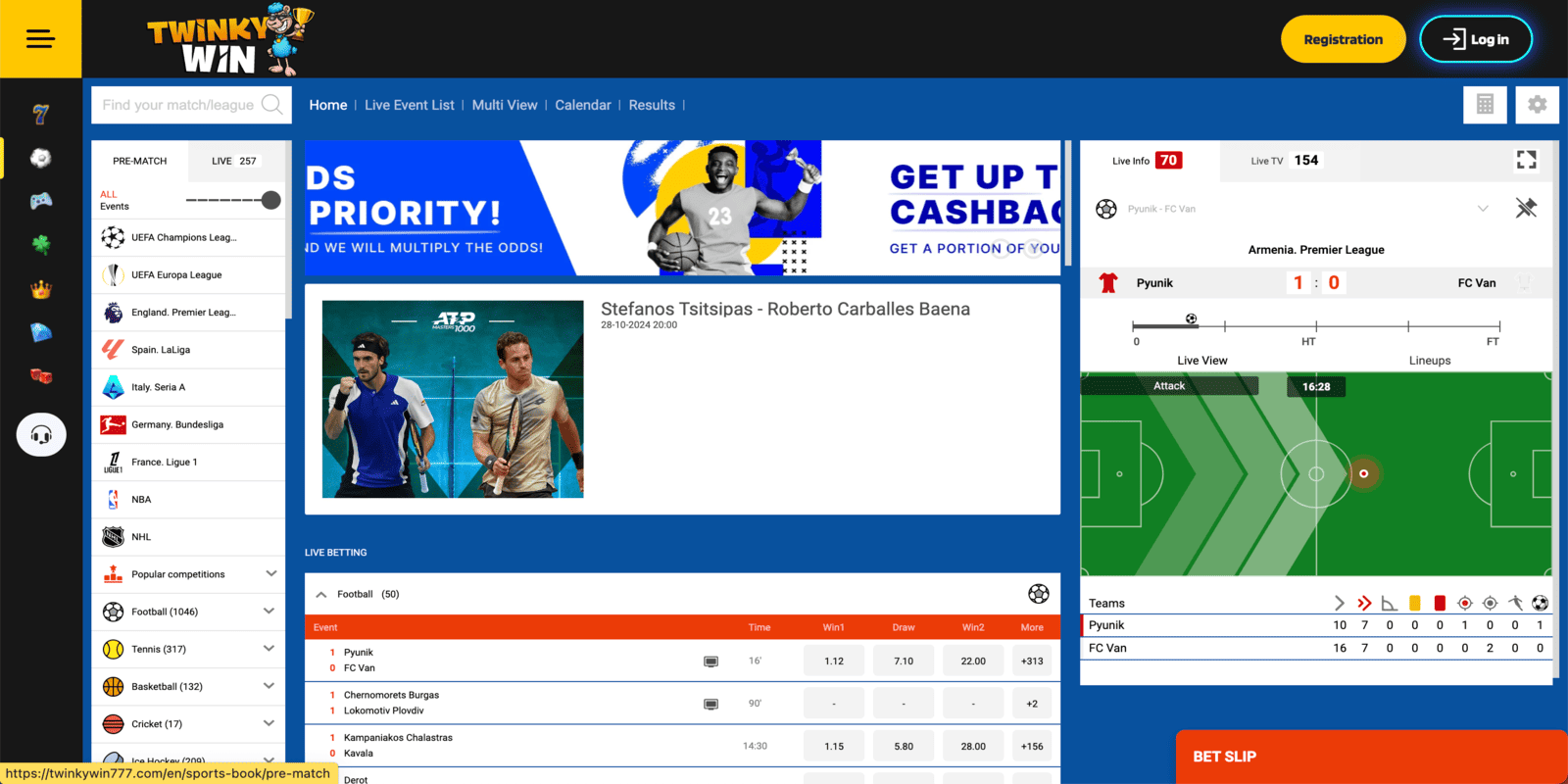 Twinky Win offers not only a rich set of casino games but also a wide array of sports you can bet on. Being one of no ID gambling sites, Twinky Win allows you to register and predict outcomes of thousands of local and international sports events without any limits or restrictions. Bookie offers a lot of betting markets, competitive odds, and a handy live stream option that makes it possible to watch your favourite team play and place well-informed bets.