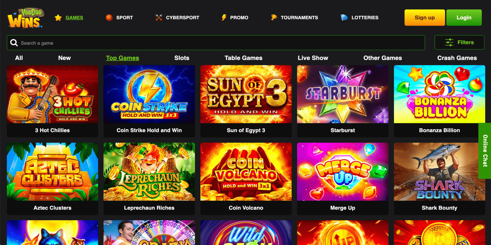 Online slots take a huge part of the Voodoo Wins Casino game library. Slot lovers can pick between classic slots with a simplistic design and very few special features and video slot machines with five or more reels and plenty of bonuses. Take a pick and start spinning right away.